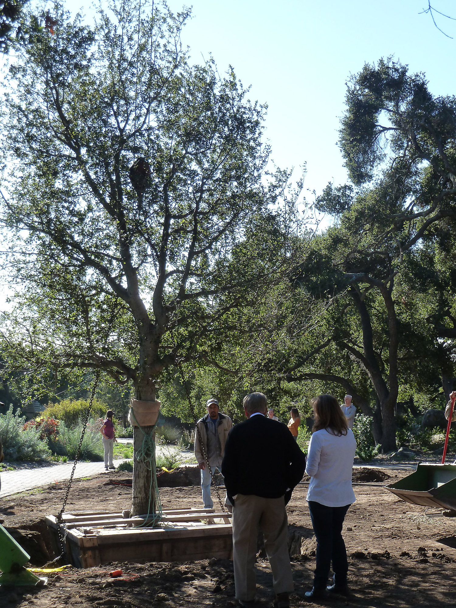 Delivery and placement of two new oak trees (Coastal Live Oak) in the Meadow Oaks display