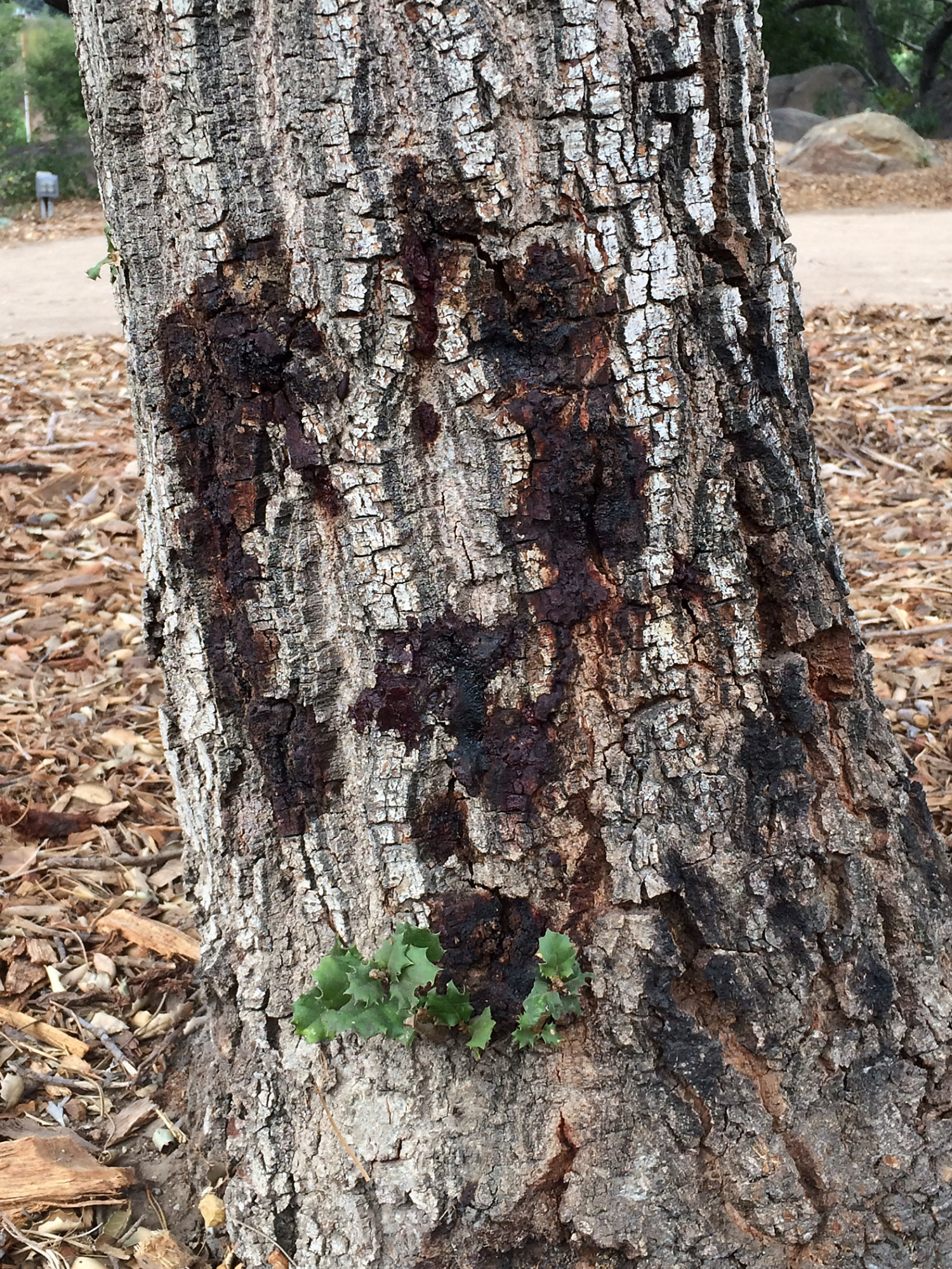 « back to search Foamy Canker Disease on Quercus agrifolia (Coastal Live Oak) Date October 9, 2014 Media FormatBorn Digital PhotographerElizabeth (Betsy) Collins Location Information Place Name Santa Barbara Botanic Garden Country: United States State: California County: Santa Barbara Plant Information Plant(s) Pictured Coast Live Oak (Quercus agrifolia) Šmuwič (Barbareño)kuẃ More Info Alternative Common NamesOak, Coast Live, California Live Oak Native StatusNative Plant Type/Growth FormTree Blooming PeriodSpring, Winter Plant Communities Woodland, Foothill Woodland, Southern Oak Woodland Flower Color Yellow, Green, Cream Primary Plant Part Bark General Subject Subject Tags Fungi Image & Format Details Photo OrientationPortrait Collection SBBG Born Digital Image Collection Index NumberBD_26976