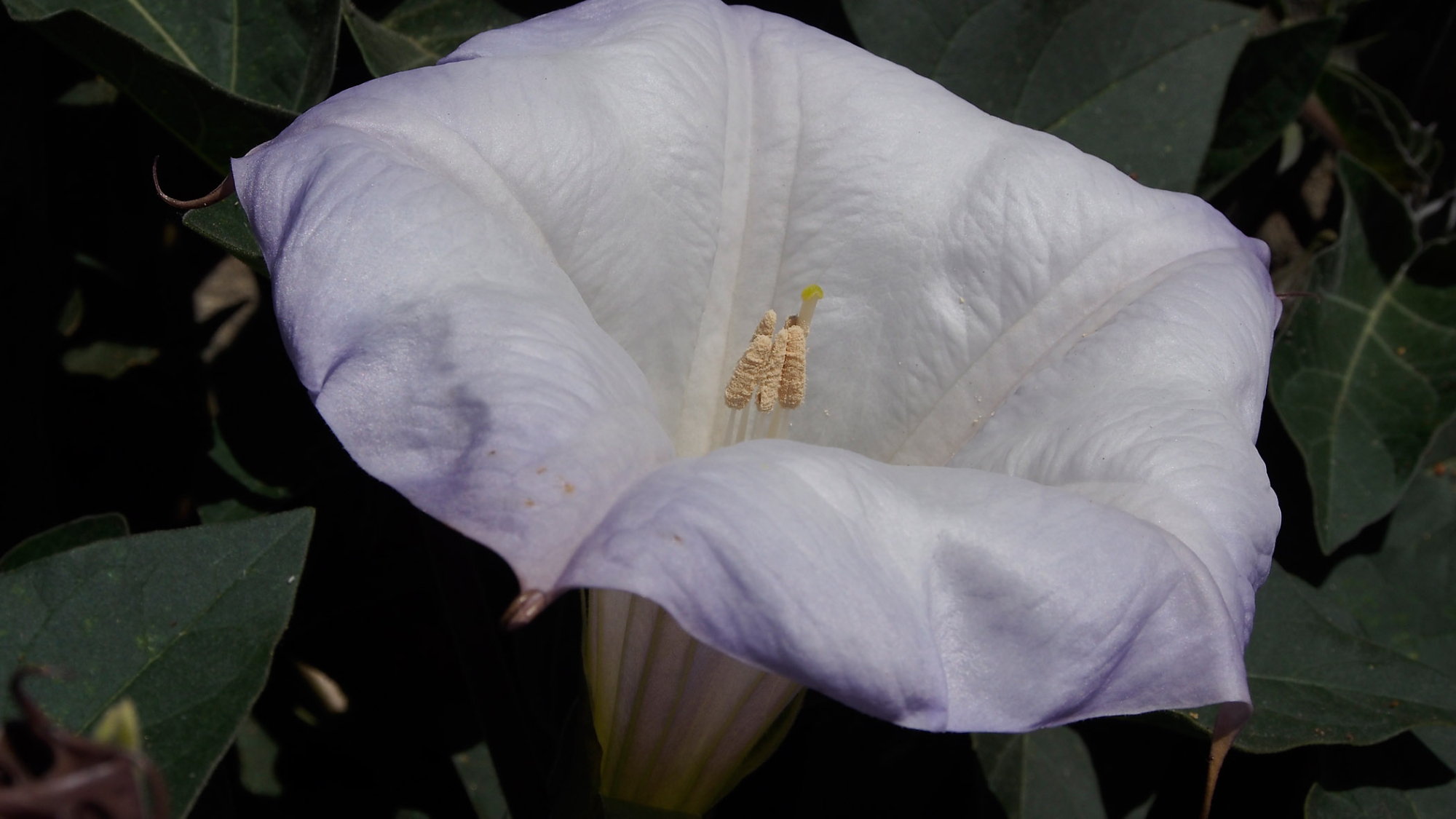 « back to search Jimsonweed at SBBG, SBBG Photo Contest 2013 Date April 4, 2012 Media FormatBorn Digital PhotographerDan Richards Location Information Place Name Santa Barbara Botanic Garden Country: United States State: California County: Santa Barbara Plant Information Plant(s) Pictured Sacred Datura (Datura wrightii) Šmuwič (Barbareño)mo'moy More Info Alternative Common NamesJimsonweed, Devil's weed, Moonflower, Toloache, Tolguacha, Momoy, Samay e'nurr Indian Apple, Sacred Thorn-apple, Western Jimsonweed, California Jimsonweed Native StatusNative Plant Type/Growth Formperennial herb Blooming PeriodWinter, Spring, Summer, Fall Synonyms LongMoonflower Plant Communities Chaparral, Datura wrightii, Desert, Chaparral, Datura wrightii, Datura wrightii, Joshua Tree Woodland, Lowland Chaparral, Maritime Desert Scrub, Southern Coastal Scrub Flower Color Purple, White Primary Plant Part Flower Close-up Image & Format Details Decade2010s Photo OrientationLandscape Image & Format Tags Color photograph Collection SBBG Born Digital Image Collection Index NumberBD_14140