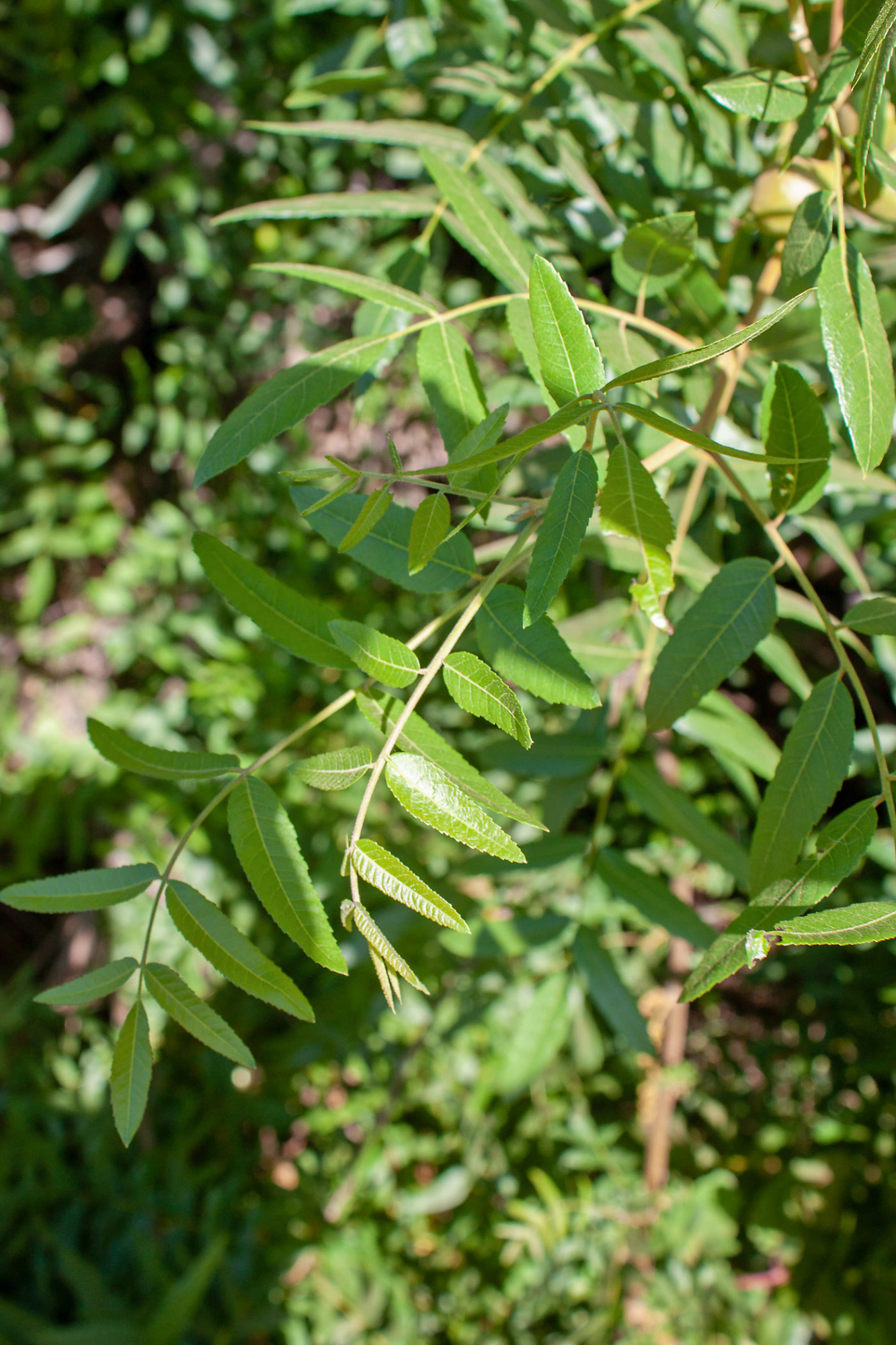 Native walnut (Juglans californica) leaves, Ventura River Preserve, Ojai, CA, Thomas Fire Survey - Mapping Recovery project