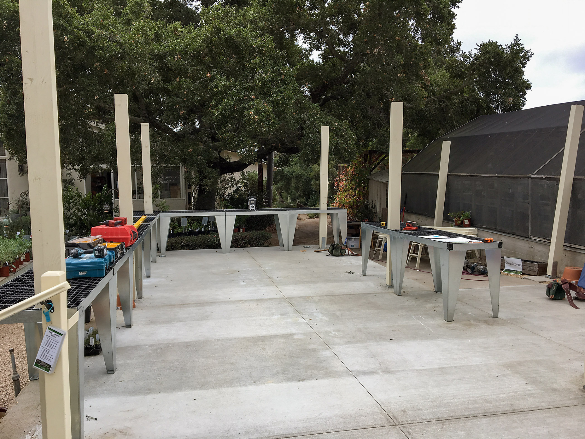 New tables, construction of new shade structure at the Garden Growers Nursery