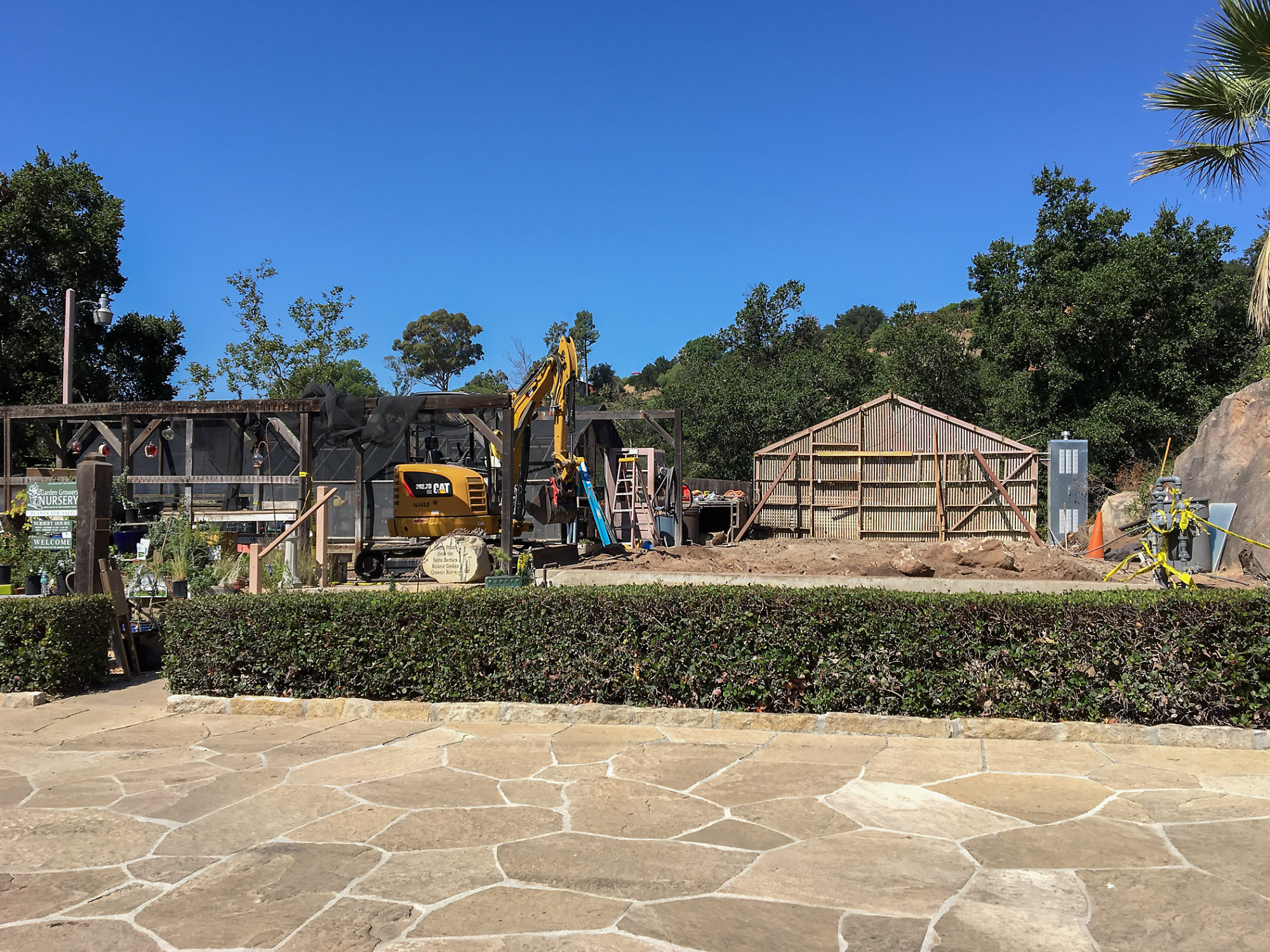 « back to search Repair of Garden Growers Lath House, looking west Date August 17, 2017 Media FormatBorn Digital PhotographerElizabeth (Betsy) Collins Location Information Place Name Santa Barbara Botanic Garden Country: United States State: California County: Santa Barbara Santa Barbara Botanic Garden Garden Building Depicted Lath house (Courtyard) General Subject Subject Tags Construction Equipment/Gear/Tools Image & Format Details Decade2010s Photo OrientationLandscape Image & Format Tags Color photograph Collection SBBG Born Digital Image Collection Index NumberBD_37899