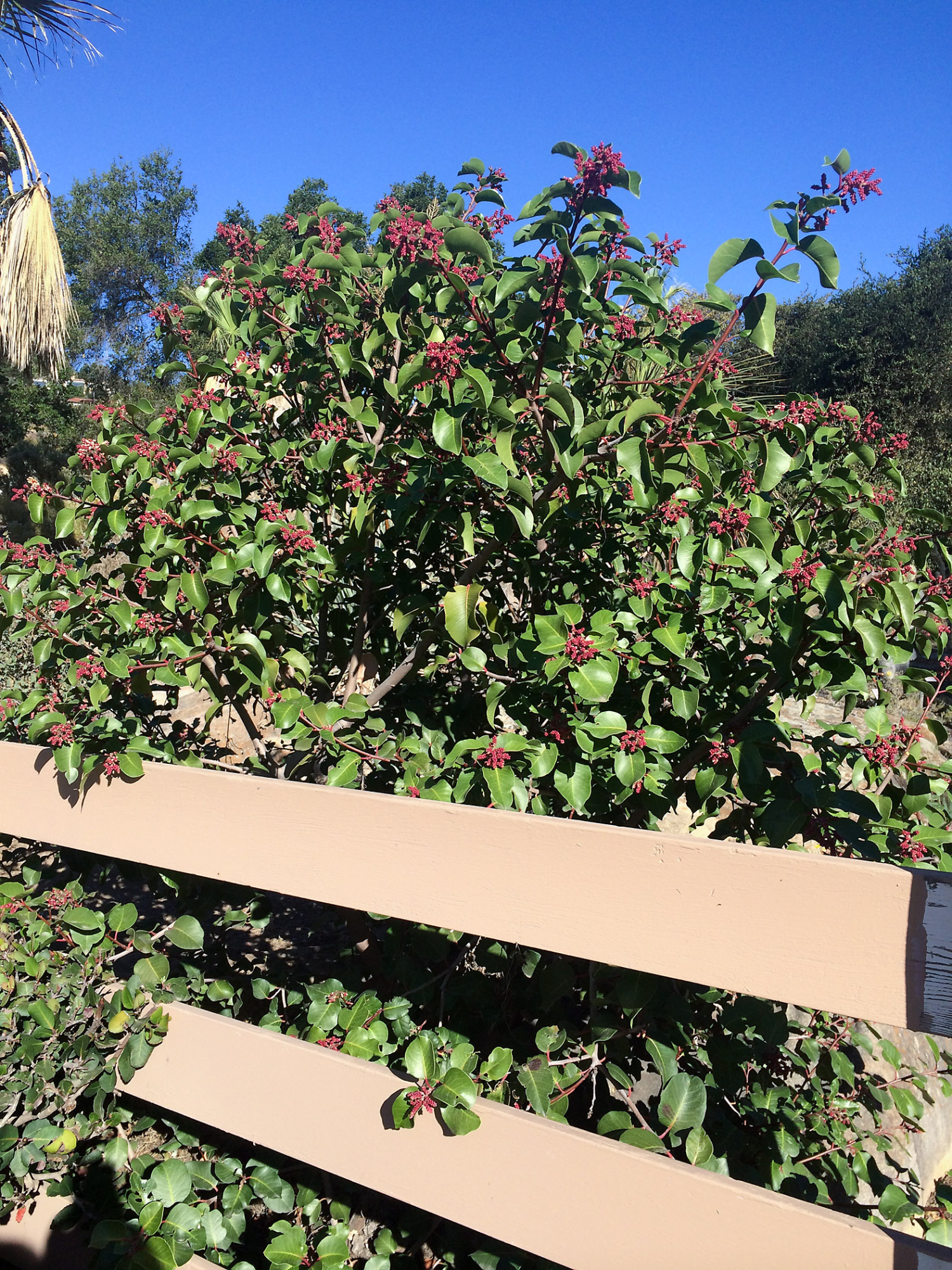 Rhus ovata at gates to courtyard