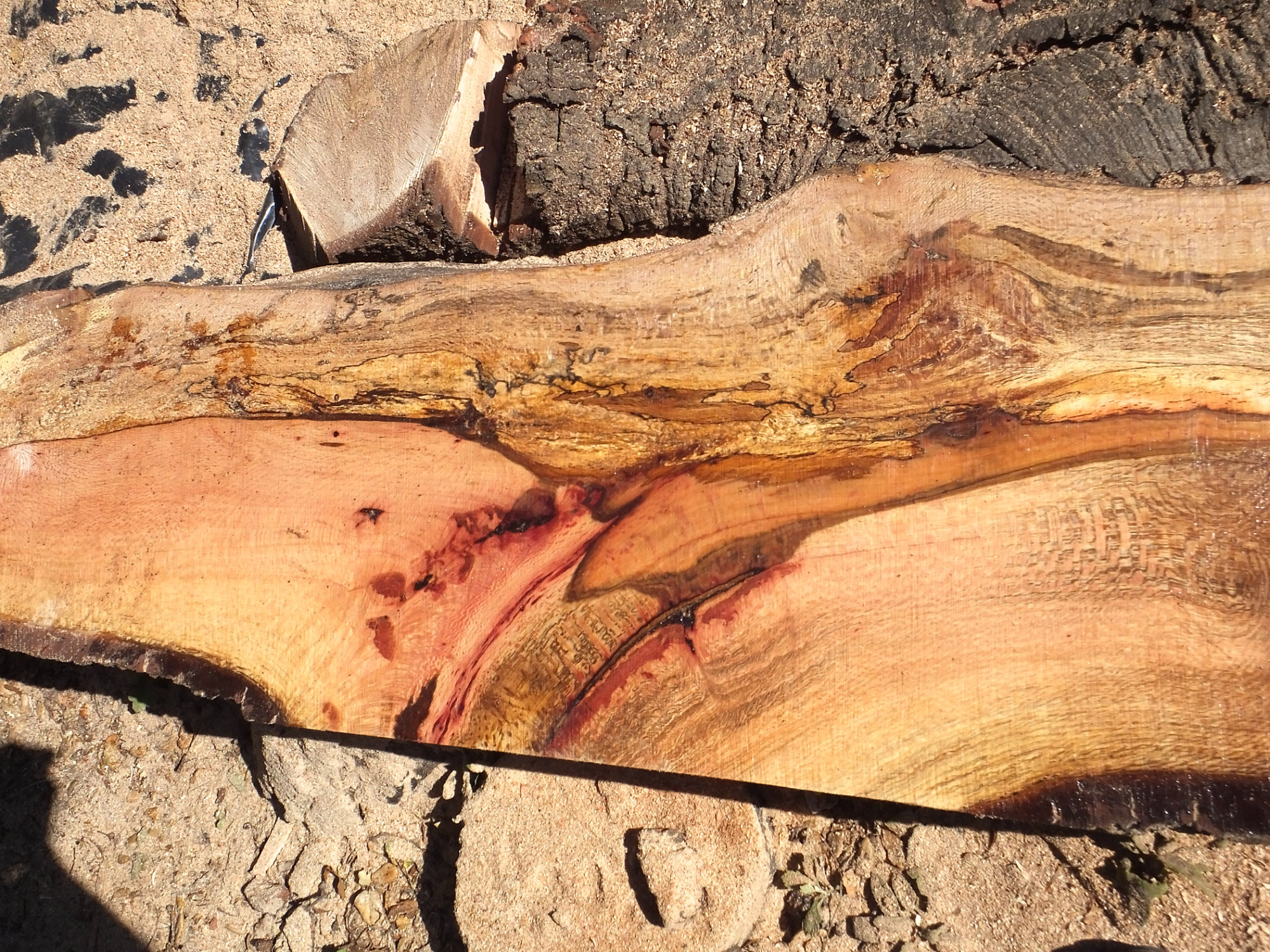 Trunk of former Cottage Oak being milled into slabs