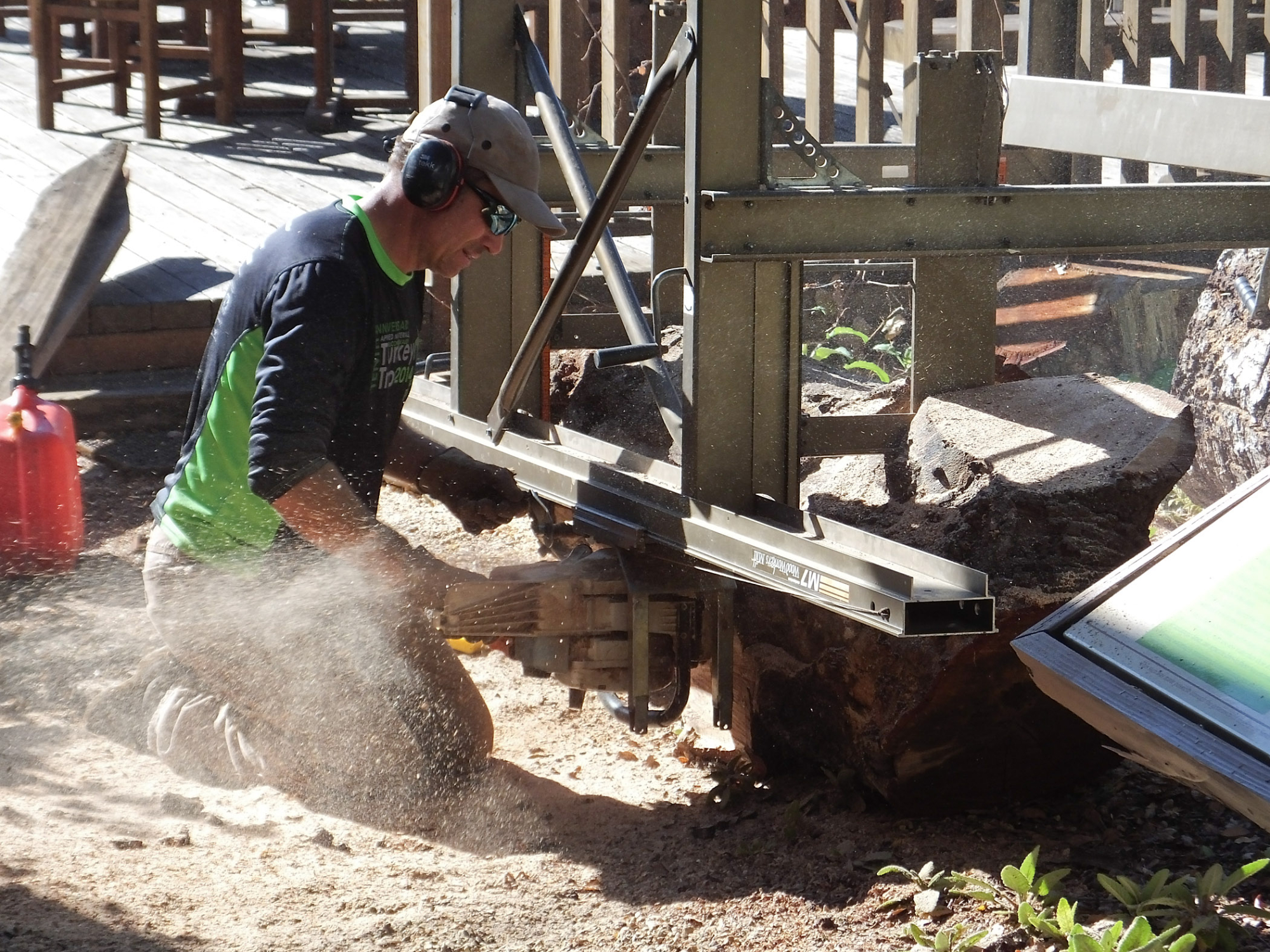 Trunk of former Cottage Oak (Coastal Live Oak) being milled into slabs by Ed Smith of Local Wood