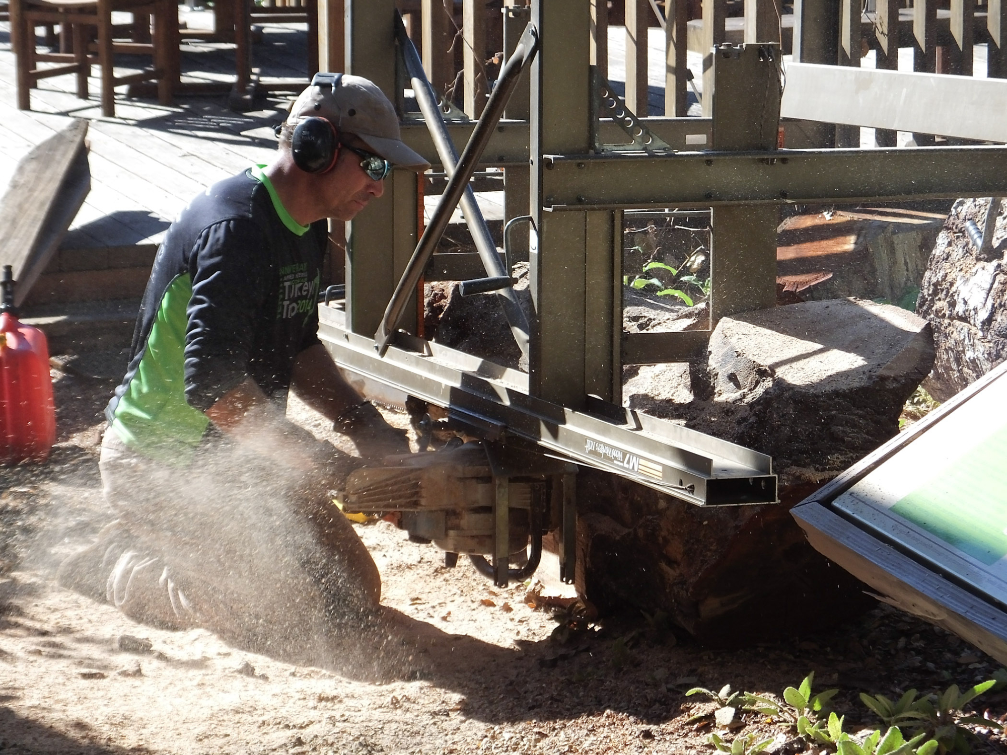 Trunk of former Cottage Oak (Coastal Live Oak) being milled into slabs by Ed Smith of Local Wood