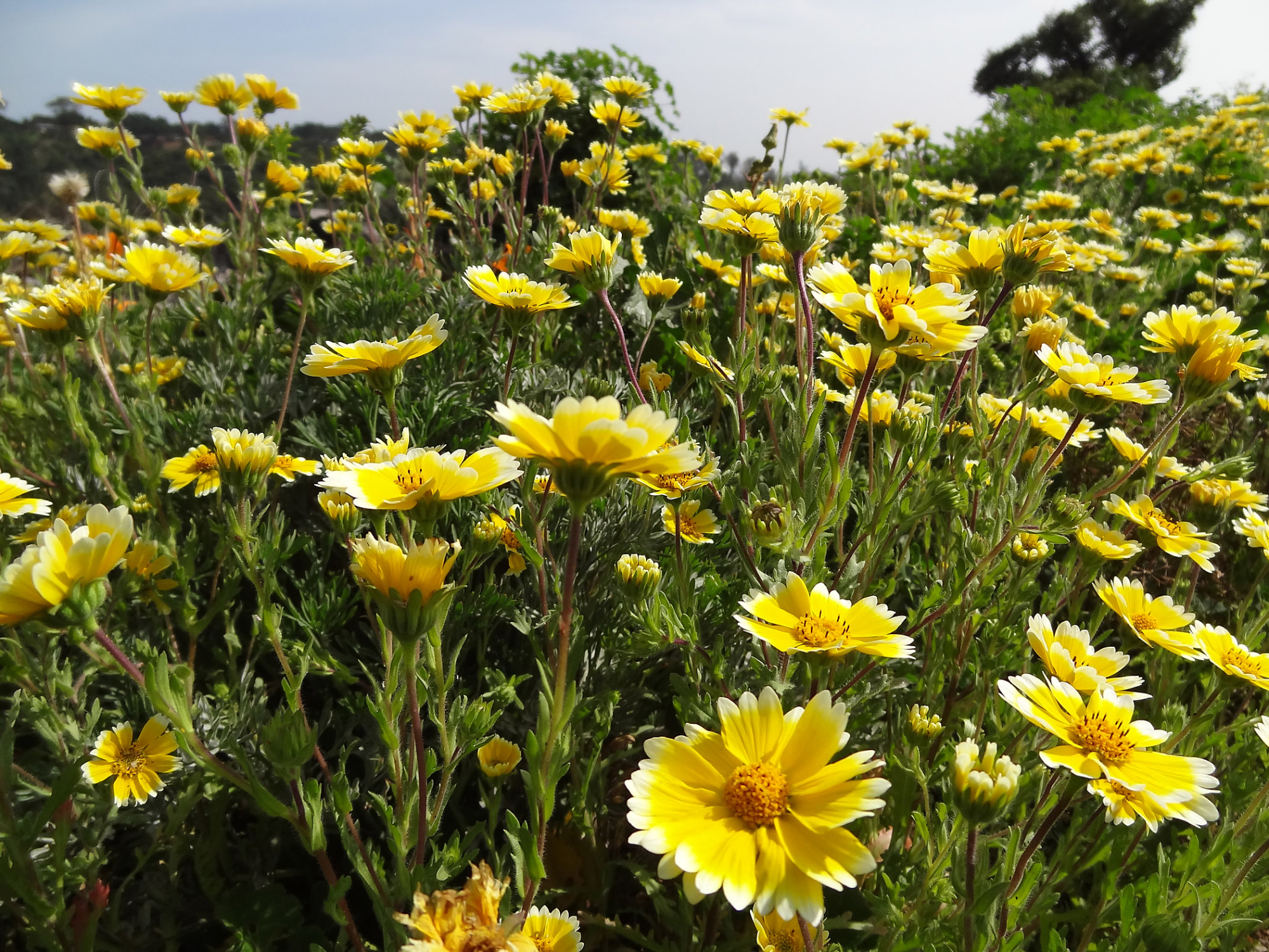 « back to search Wildflower display on the east side of the Garden Date 2013 Media FormatBorn Digital PhotographerTricia Wardlaw Location Information Place Name Santa Barbara Botanic Garden Country: United States State: California County: Santa Barbara Plant Information Plant(s) Pictured Tidytips (Layia platyglossa) More Info Alternative Common NamesTidy Tips , Common, Coastal Tidytips, Common Tidy-tips, Tidy Tips Native StatusNative Plant Type/Growth Formannual herb Blooming PeriodSpring, Winter Plant Communities Chaparral, Layia platyglossa, Forest, Grassland, Woodland, Chaparral, Foothill Woodland, Northern Coastal Scrub, Valley Grassland, Yellow Pine Forest Flower Color Yellow Primary Plant Part Whole Plant Image & Format Details Decade2010s Photo OrientationLandscape Image & Format Tags Color photograph Collection Tricia Wardlaw Collection Index NumberBD_16130