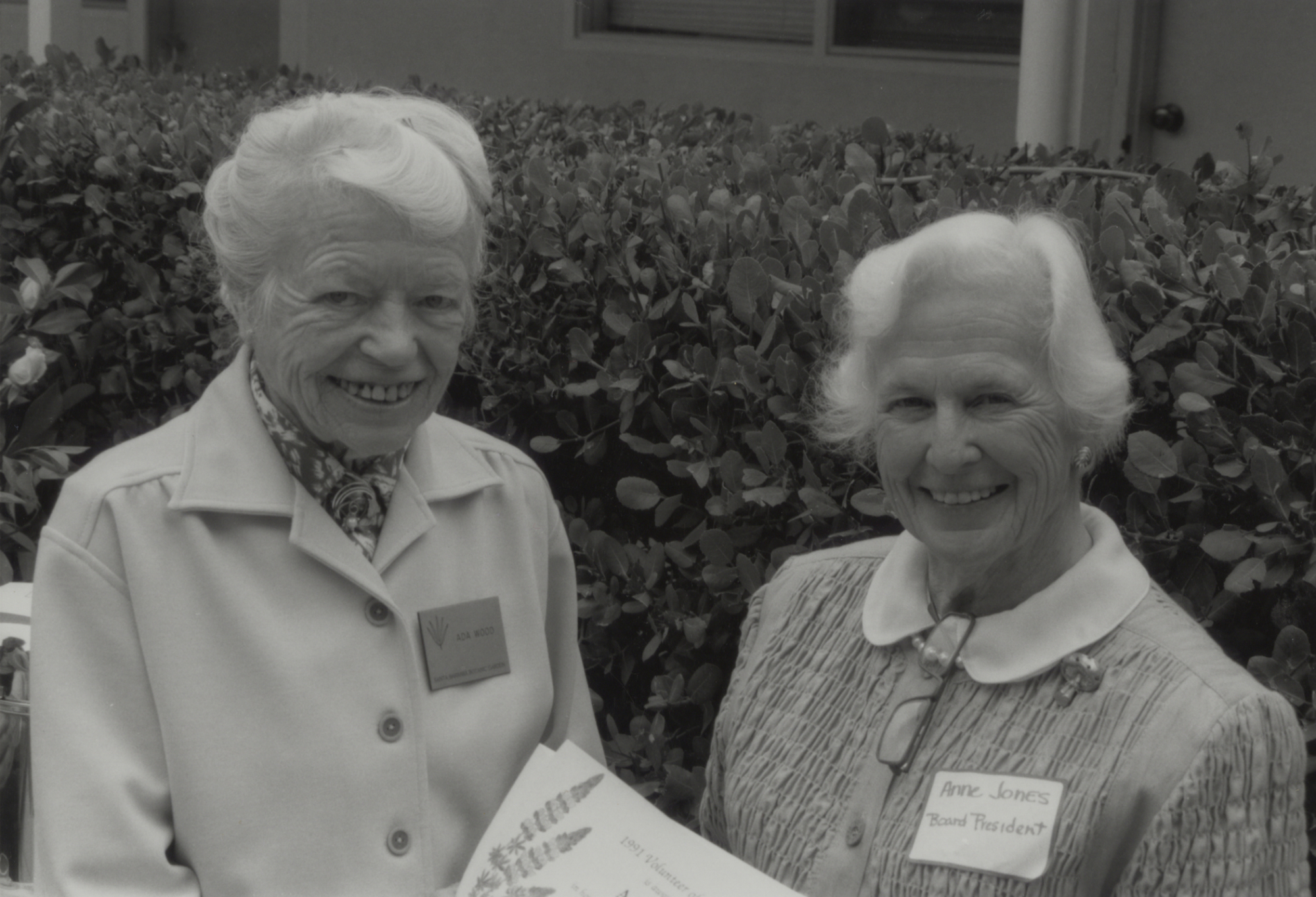 « back to search Ada Wood and Anne Jones Date 1991 Media FormatPrint PhotographerLiz Mason Location Information Place Name Santa Barbara Botanic Garden Country: United States State: California County: Santa Barbara General Subject Subject Tags SBBG (Directors) People People Depicted Anne Jones, Ada Wood Image & Format Details Decade1990s Photo OrientationLandscape Image & Format Tags Black & white photograph Collection SBBG Library Archives Original Size 5x7 Index NumberPR_01255 Print Type Black & White