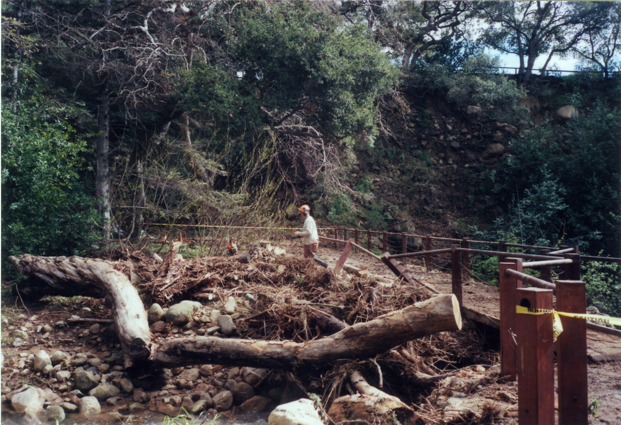 Dave Kershaw at Mission Dam clearing debris left by February 17 2017 rainstorm