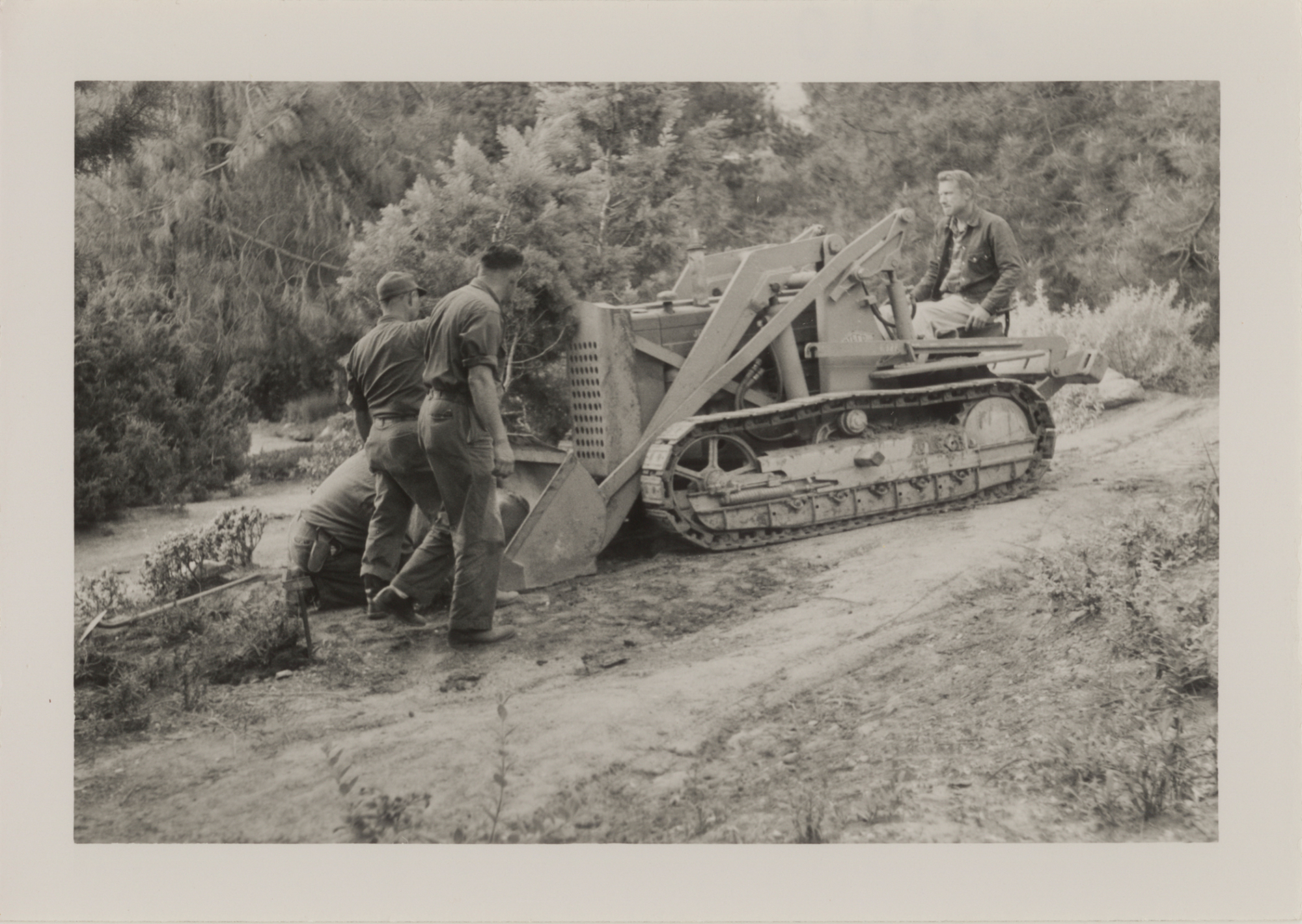 Grounds work, moving a tree with tractor, 1958