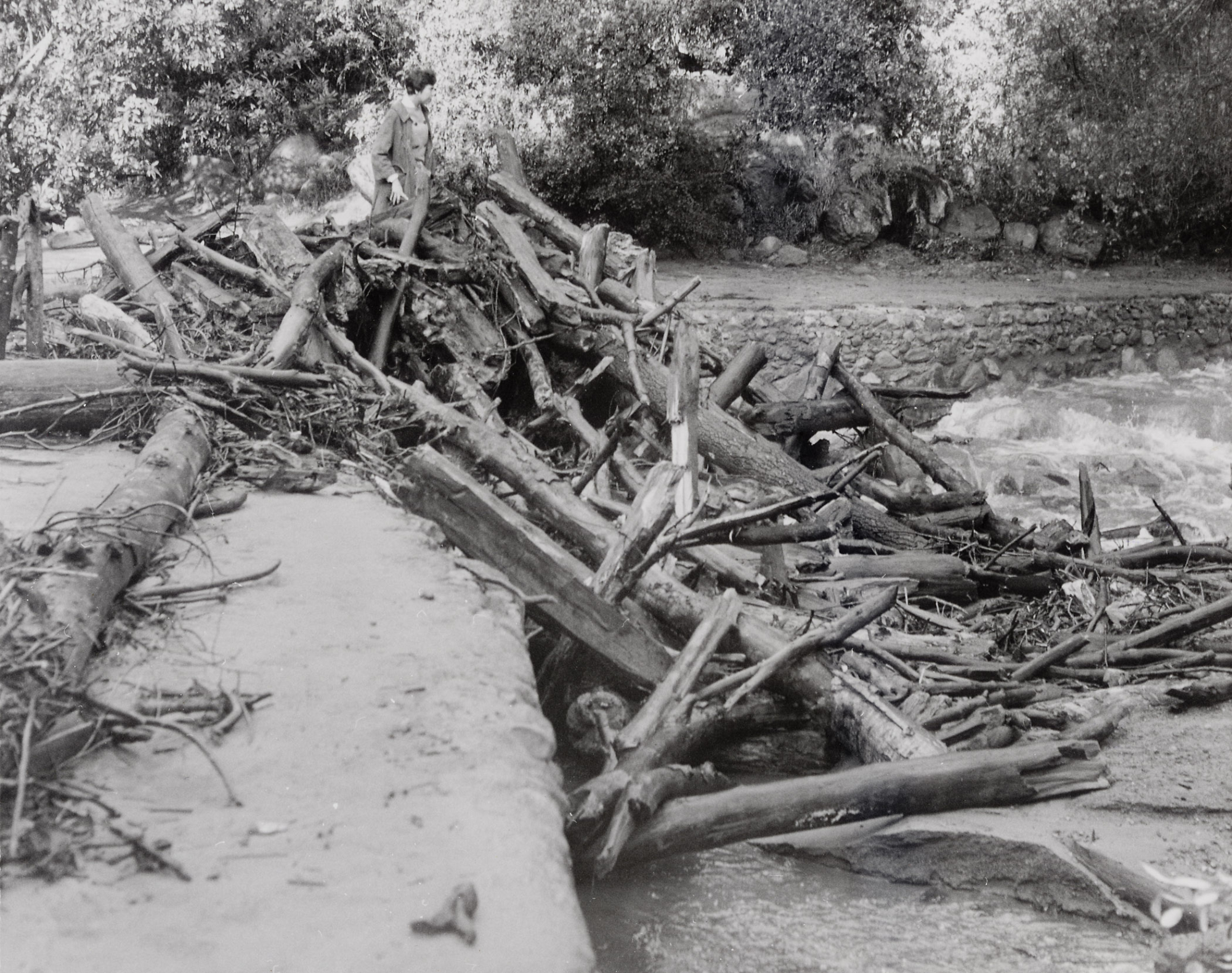 Logs behind the Dam, January 1969 flood