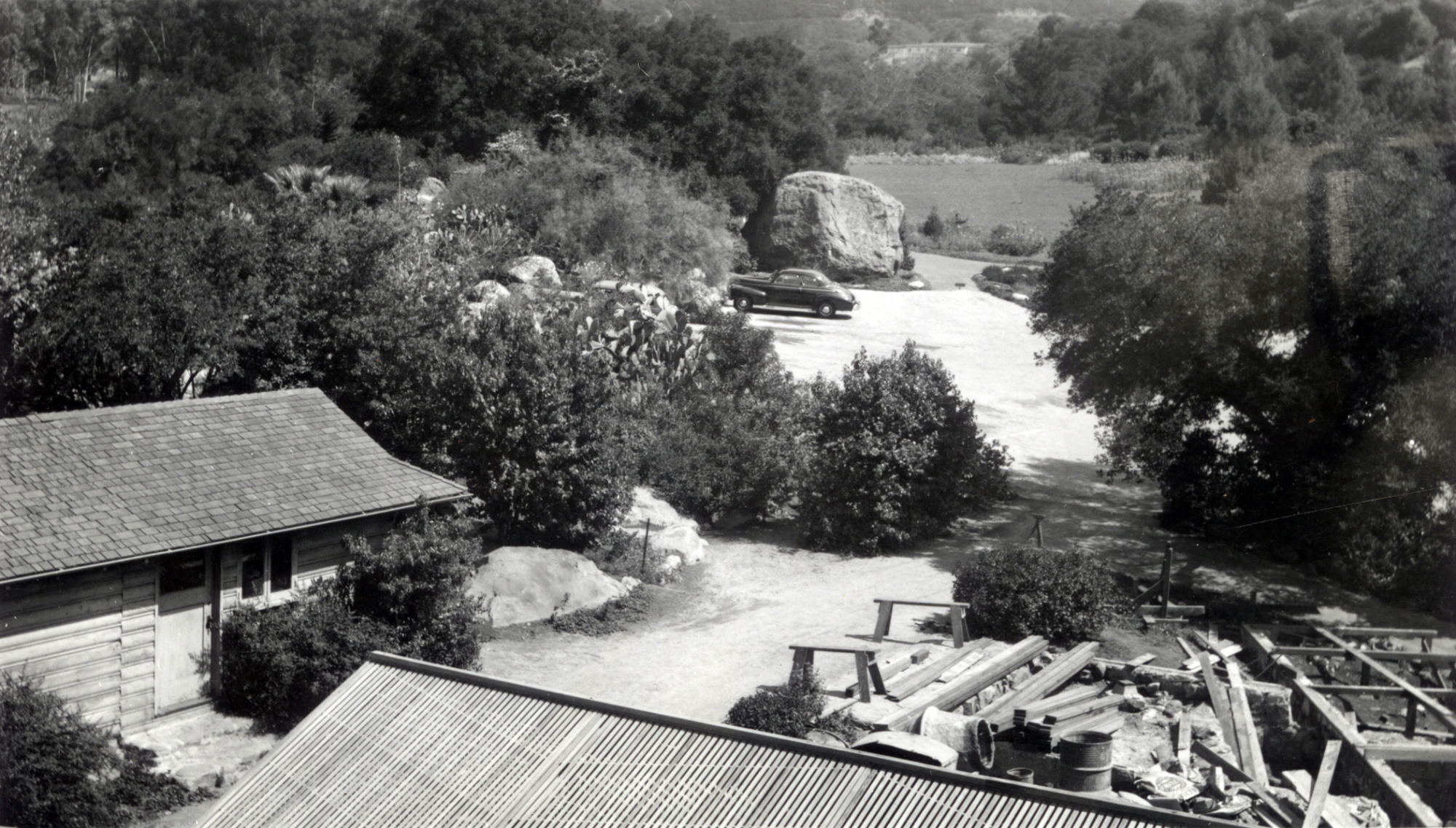 « back to search Meadow, Blaksley Boulder, Parking Lot, Caretakers Cottage, Lath House Date June 1, 1942 Media FormatPrint PhotographerUnknown Location Information Place Name Santa Barbara Botanic Garden Country: United States State: California County: Santa Barbara Santa Barbara Botanic Garden Garden Section/Display Meadow, Courtyard Garden Building Depicted Lath house (Courtyard), Cottage Garden Display/Feature Blaksley Boulder, Main Parking Lot General Subject Subject Tags Construction Image & Format Details Decade1940s Photo OrientationLandscape Collection SBBG Library Archives Index NumberPR_03292 Print with Negative Yes