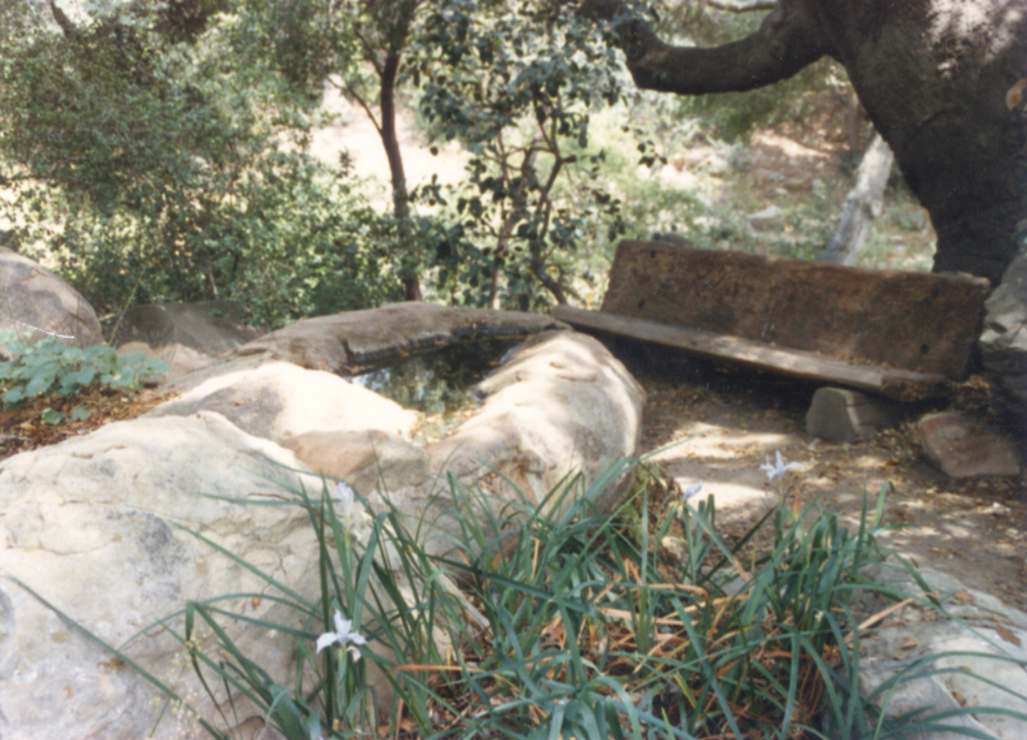 old wood bench in Manzanita Section (replaced by Weininger Bench)