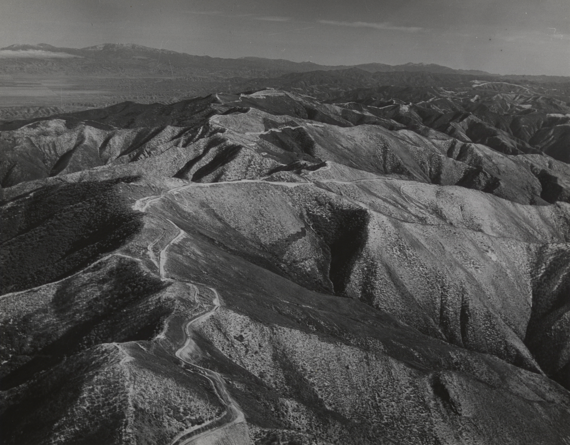 Sierra MAdre near McPherson Peak, after the Wellman wildfire of 1966, looking toward Mt Pinos (upper left) and Reyes Peak (upper right)