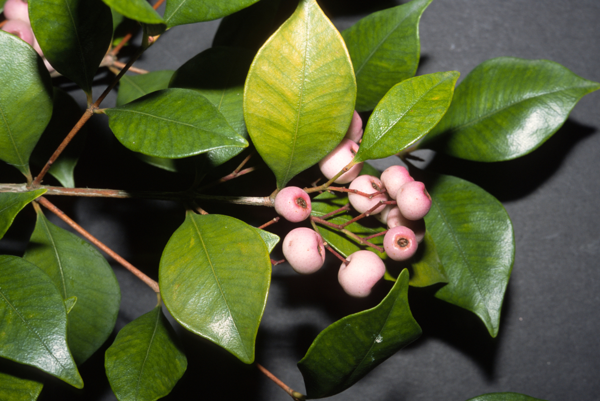 « back to search Acmena smithii Date December 2001 Media FormatSlide PhotographerBob (J.R.) Haller Location Information Place Name Franceschi Park Country: United States State: California County: Santa Barbara City: Santa Barbara Plant Information Plant(s) Pictured Lilly Pilly (Acmena smithii) More Info Synonyms LongSyzygium smithii Primary Plant Part Fruit, Leaves Image & Format Details Decade2000s Photo OrientationLandscape Image & Format Tags Color photograph Collection Trees of Santa Barbara 2005 Index NumberSL_13590