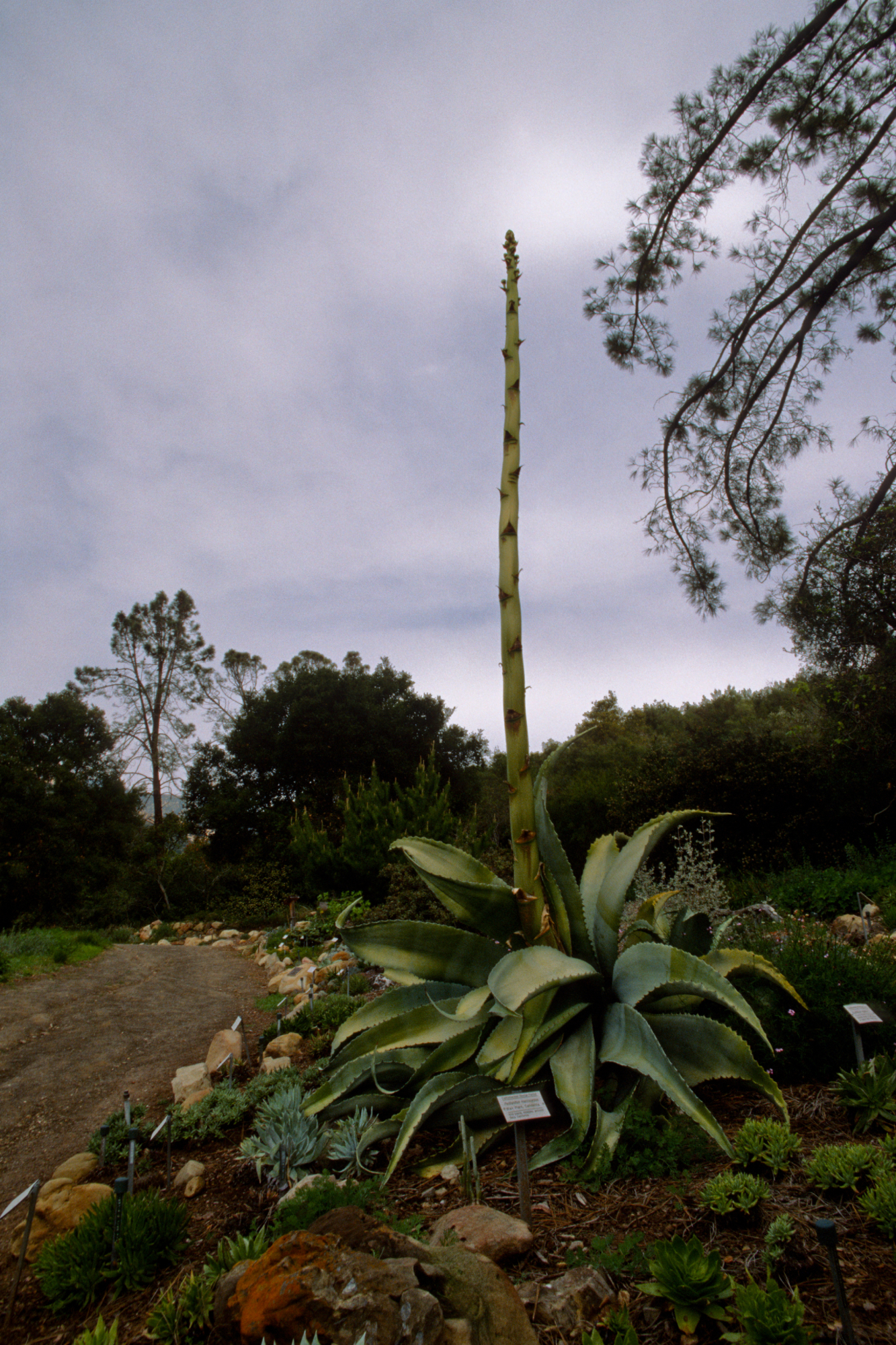 « back to search Agave sobria with tall inflorescence in Dudleya Display Date January 26, 1998 Media FormatSlide PhotographerUnknown Location Information Place Name Santa Barbara Botanic Garden Country: United States State: California County: Santa Barbara Santa Barbara Botanic Garden Garden Section/Display Dudleya Display Plant Information Plant(s) Pictured Mescal Pardo (Agave sobria) More Info Plant Type/Growth FormCactus/succulent Primary Plant Part Bud (leaf or flower), Whole Plant, Inflorescense Planted Landscapes/Horticultural Uses Garden Name (not SBBG)Santa Barbara Botanic Garden Hardscape Feature Rocks/Boulders, Path/Trail Image & Format Details Decade1990s Photo OrientationPortrait Image & Format Tags Color photograph Collection SBBG Library Archives Index NumberSL_07101