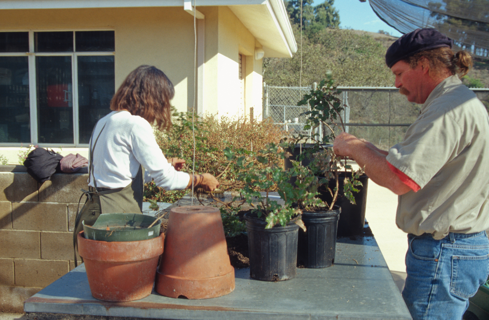 Carol Bornstein, potting up Berberis cuttings