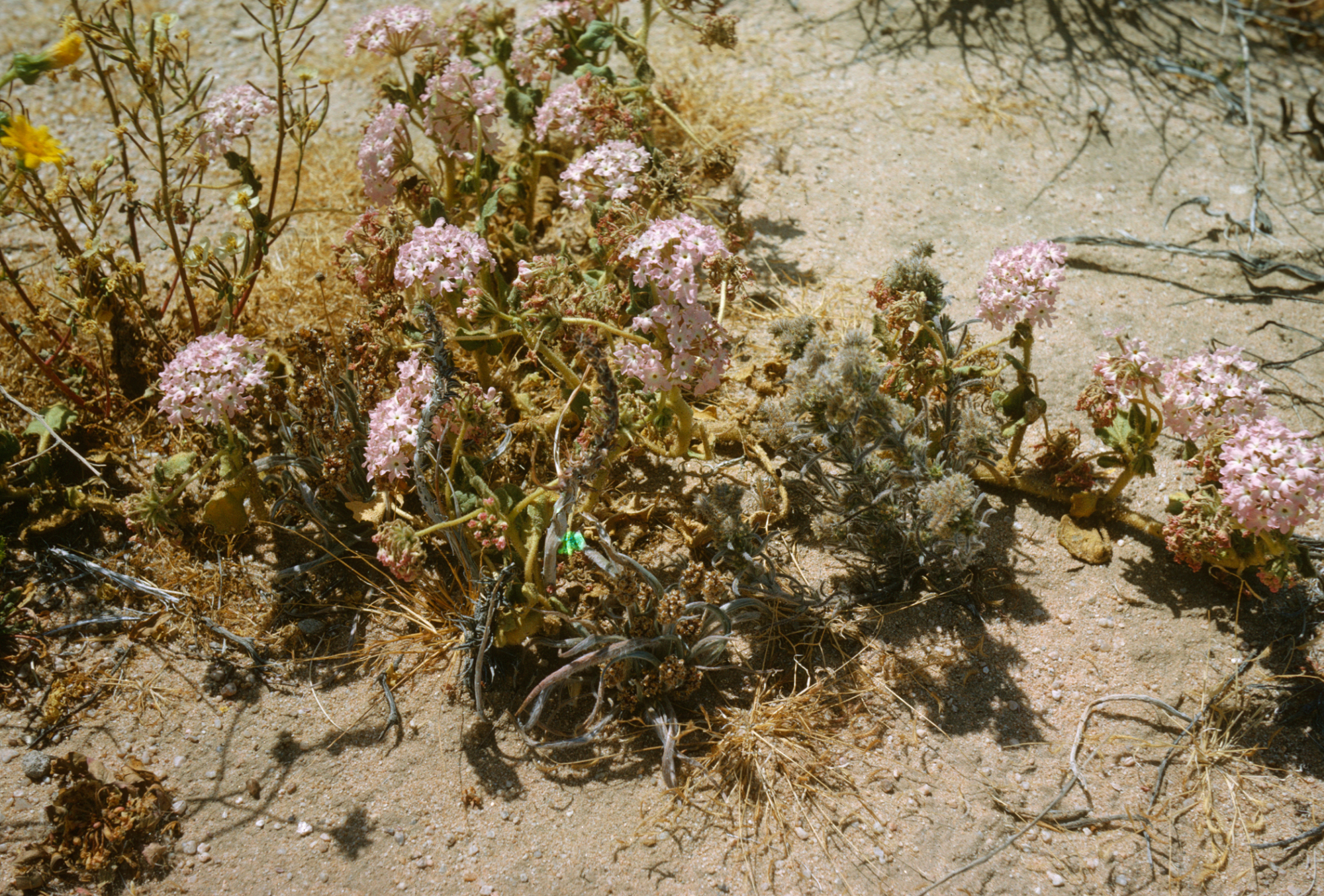 « back to search Dara Emery Photos Date April 12, 1964 Media FormatSlide PhotographerDara Emery Location Information Place Name Amboy, Twentynine Palms Country: United States State: California County: San Bernardino Specific Location2.6 mi. E of Pinto Mtn. Rd. Plant Information Plant(s) Pictured Hairy Sand Verbena (Abronia villosa) More Info Alternative Common NamesDesert Sand Verbena, Desert Sandverbena, Desert Sand-verbena Native StatusNative Plant Type/Growth Formannual herb CultivarsYes Blooming PeriodSummer, Spring, Fall, Winter Plant Communities Desert, Creosote Bush Scrub Flower Color Purple, Pink Primary Plant Part Whole Plant Image & Format Details Decade1960s Photo OrientationLandscape Image & Format Tags Color photograph Collection Dara Emery Index NumberSL_15035