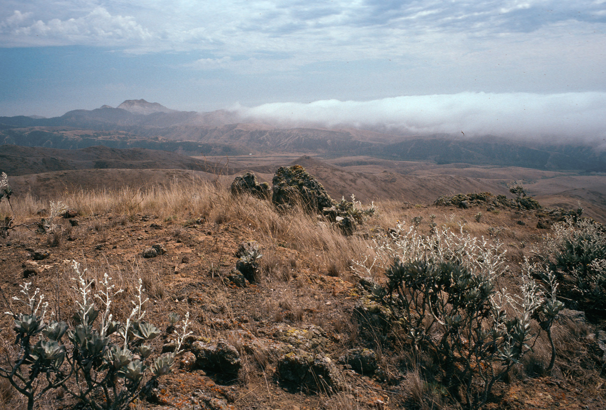 Hazardia detonsa from North ridge, near Δ“John”, Christy barn & fog, Santa Cruz Island