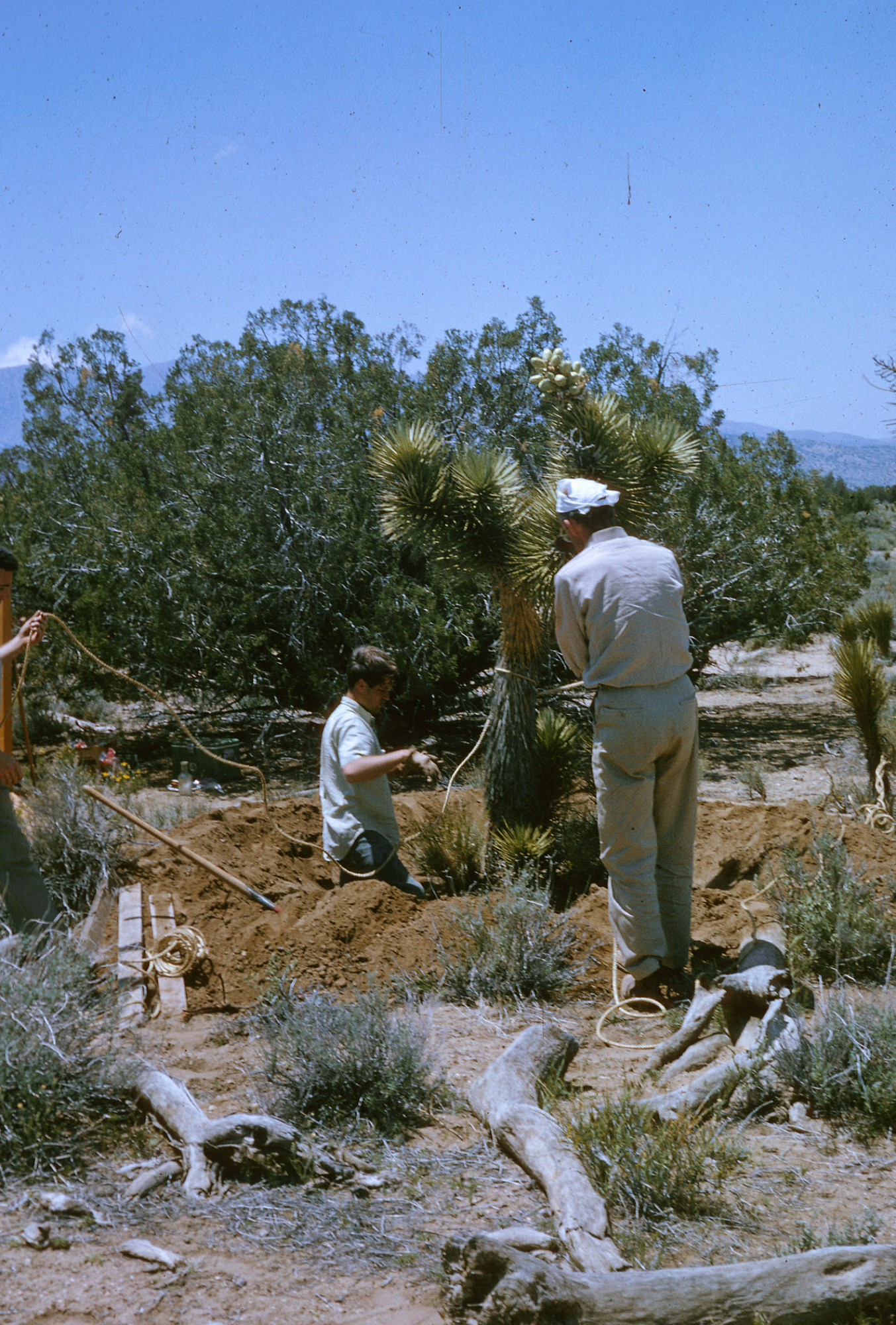 « back to search Joshua Tree being collected in wild for SBBG Date 1965 Media FormatSlide PhotographerUnknown Location Information Country: United States State: California Plant Information Plant(s) Pictured Joshua Tree (Yucca brevifolia) More Info Alternative Common NamesIzote De Desierto, Joshua Tree Woodland Native StatusNative Plant Type/Growth FormShrub, Succulent Blooming PeriodSpring Plant Communities Desert, Joshua Tree Woodland Flower Color Green, White Primary Plant Part Whole Plant Image & Format Details Decade1960s Photo OrientationPortrait Image & Format Tags Color photograph Collection SBBG Library Archives Index NumberSL_21877 Film Type Kodachrome