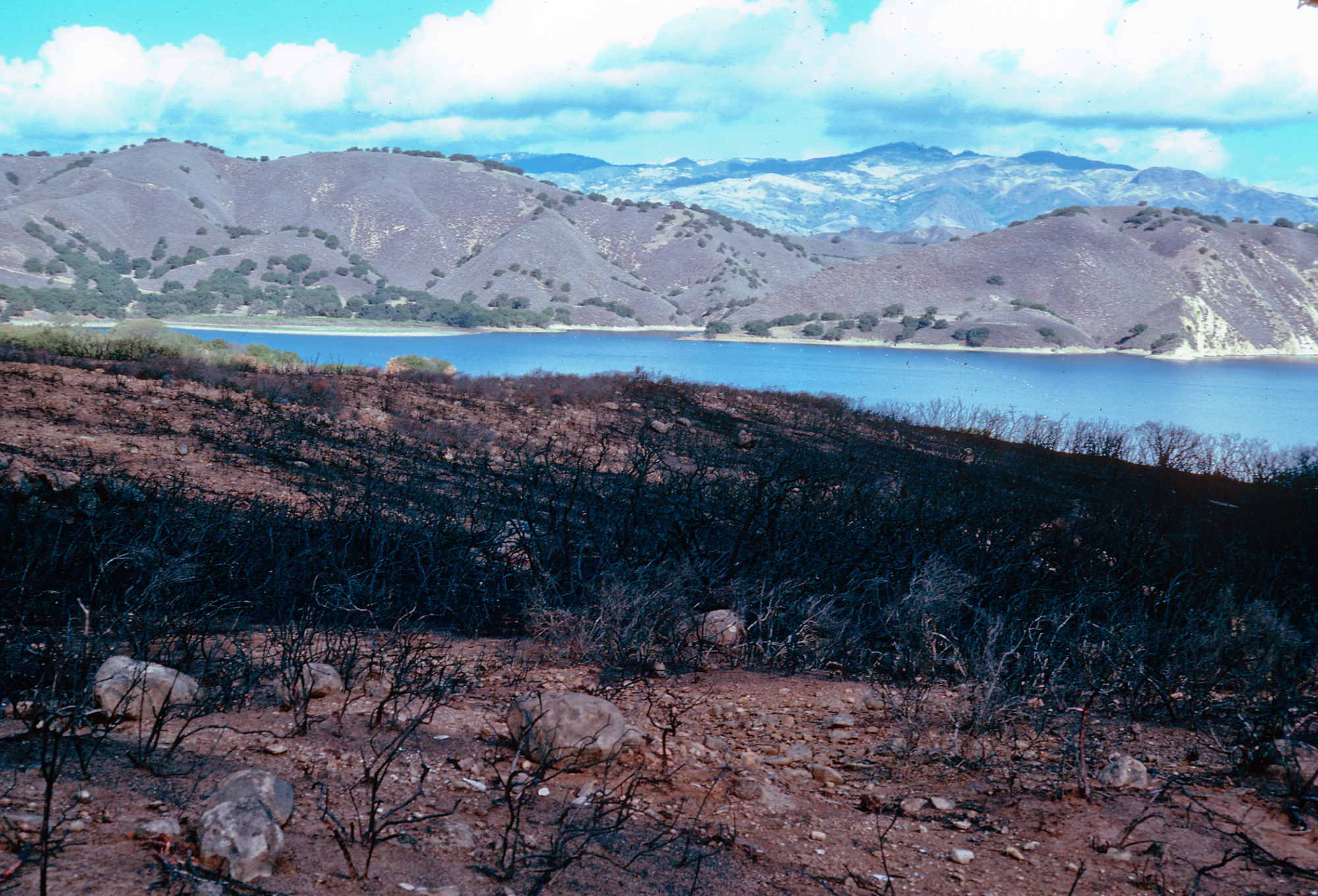 Lake Cachuma burn, at road to Bradbury Dam overview, Santa Barbara County