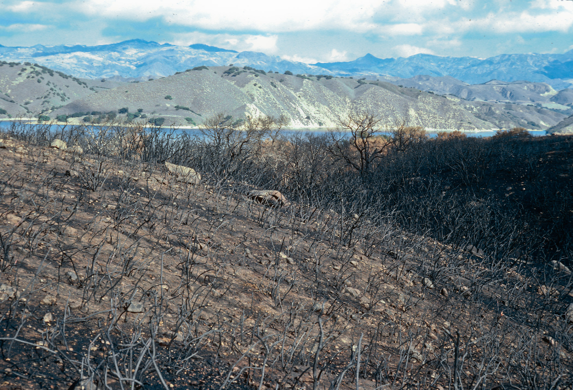 Lake Cachuma burn, at road to Bradbury Dam overview, Santa Barbara County
