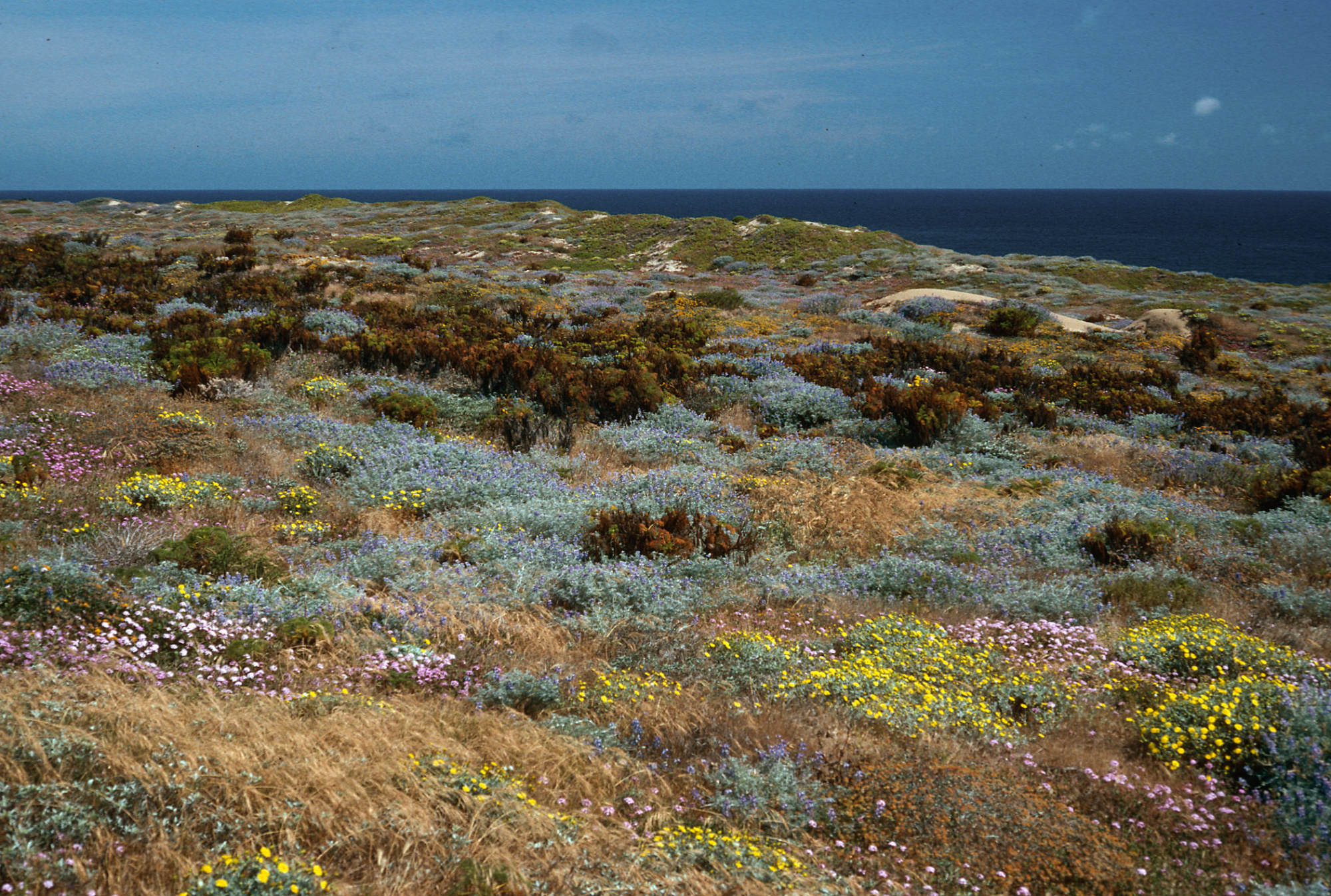 Lupinus (Lupine),/Coreopsis/Malacothrix/ Abronia (Sand Verbena), just West of Corral Harbor, San Nicolas Island