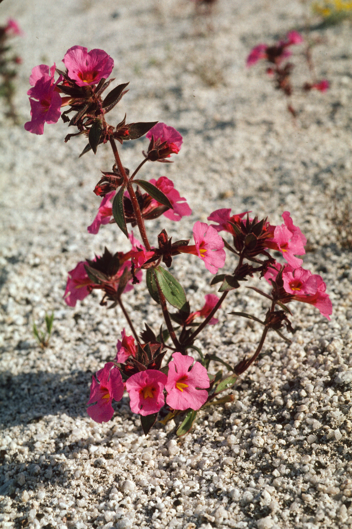 « back to search Mimulus bigelovii Date January 1, 2001 Media FormatSlide PhotographerDieter H. Wilken Location Information Country: United States State: California Plant Information Plant(s) Pictured (Mimulus bigelovii) More Info Alternative Common NamesMonkeyflower, Bigelow's, Yellow-throat Monkey-flower Native StatusNative Plant Type/Growth Formannual herb CultivarsYes Blooming PeriodWinter, Spring Synonyms LongDiplacus bigelovii Plant Communities Desert, Woodland, Creosote Bush Scrub, Joshua Tree Woodland, Pinyon-Juniper Woodland, Sagebrush Scrub Flower Color Pink Primary Plant Part Whole Plant Image & Format Details Photo OrientationPortrait Collection Dieter Wilken Index NumberSL_00897 Film Type Kodachrome