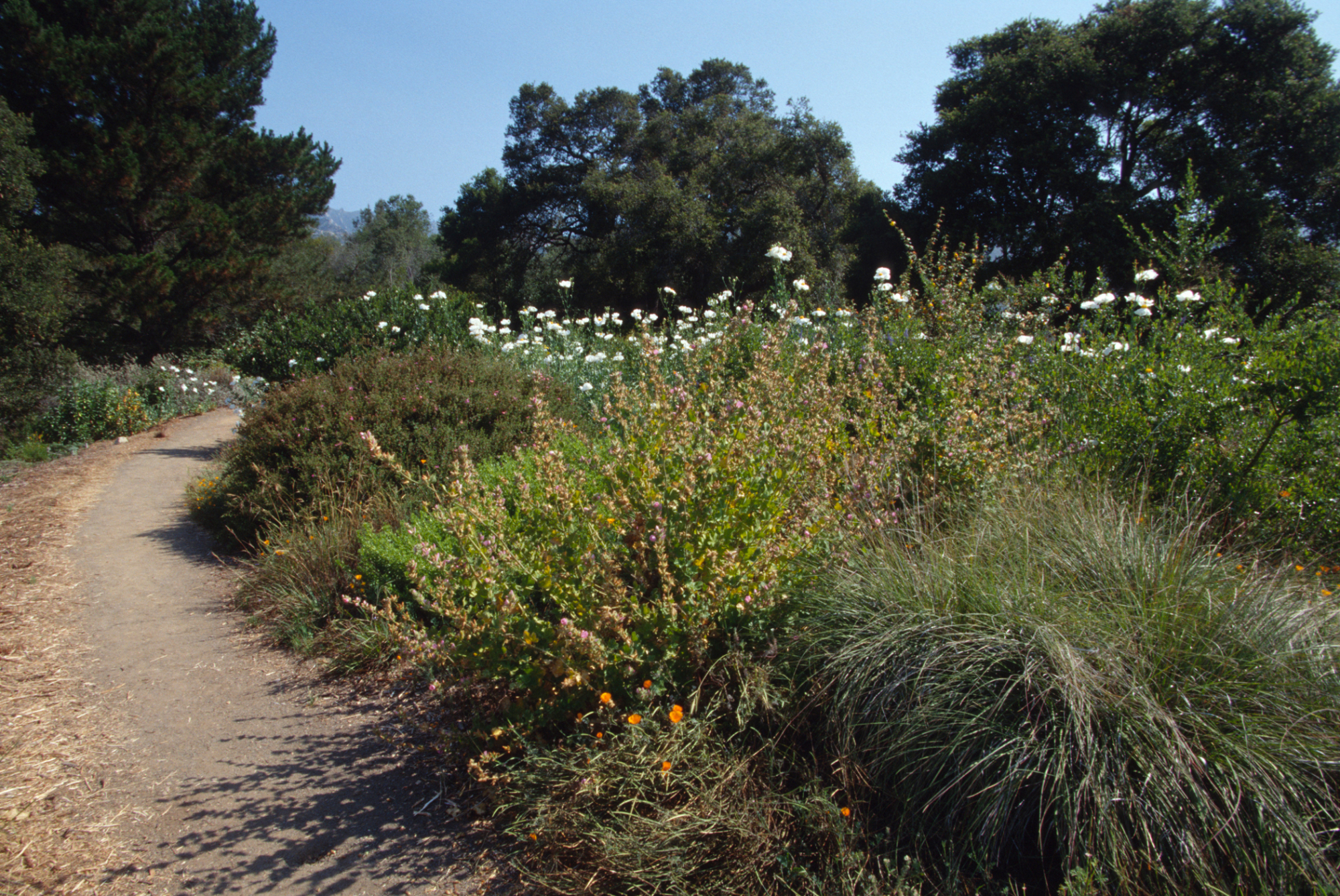 « back to search Porter Trail hilltop Looking north, ©Marie Gayeski Date 2002 Media FormatSlide PhotographerMarie Gayeski Location Information Place Name Santa Barbara Botanic Garden Country: United States State: California County: Santa Barbara Santa Barbara Botanic Garden Garden Section/Display Ceanothus Plant Information Plant(s) Pictured Butterfly Matilija Poppy (Romneya 'Butterfly') More Info Plant Type/Growth FormPerennial plant CultivarsYes Planted Landscapes/Horticultural Uses Garden Name (not SBBG)Santa Barbara Botanic Garden Hardscape Feature Path/Trail General Subject Subject Tags Wildflower Display Image & Format Details Decade2000s Photo OrientationLandscape Image & Format Tags Color photograph Collection SBBG Library Archives Index NumberSL_07110