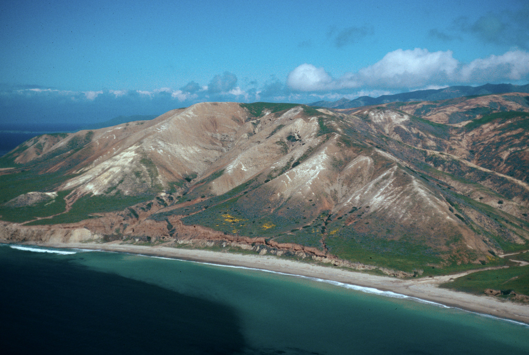 Pozo Beach, note patches of Eschscholzia californica, Santa Cruz Island