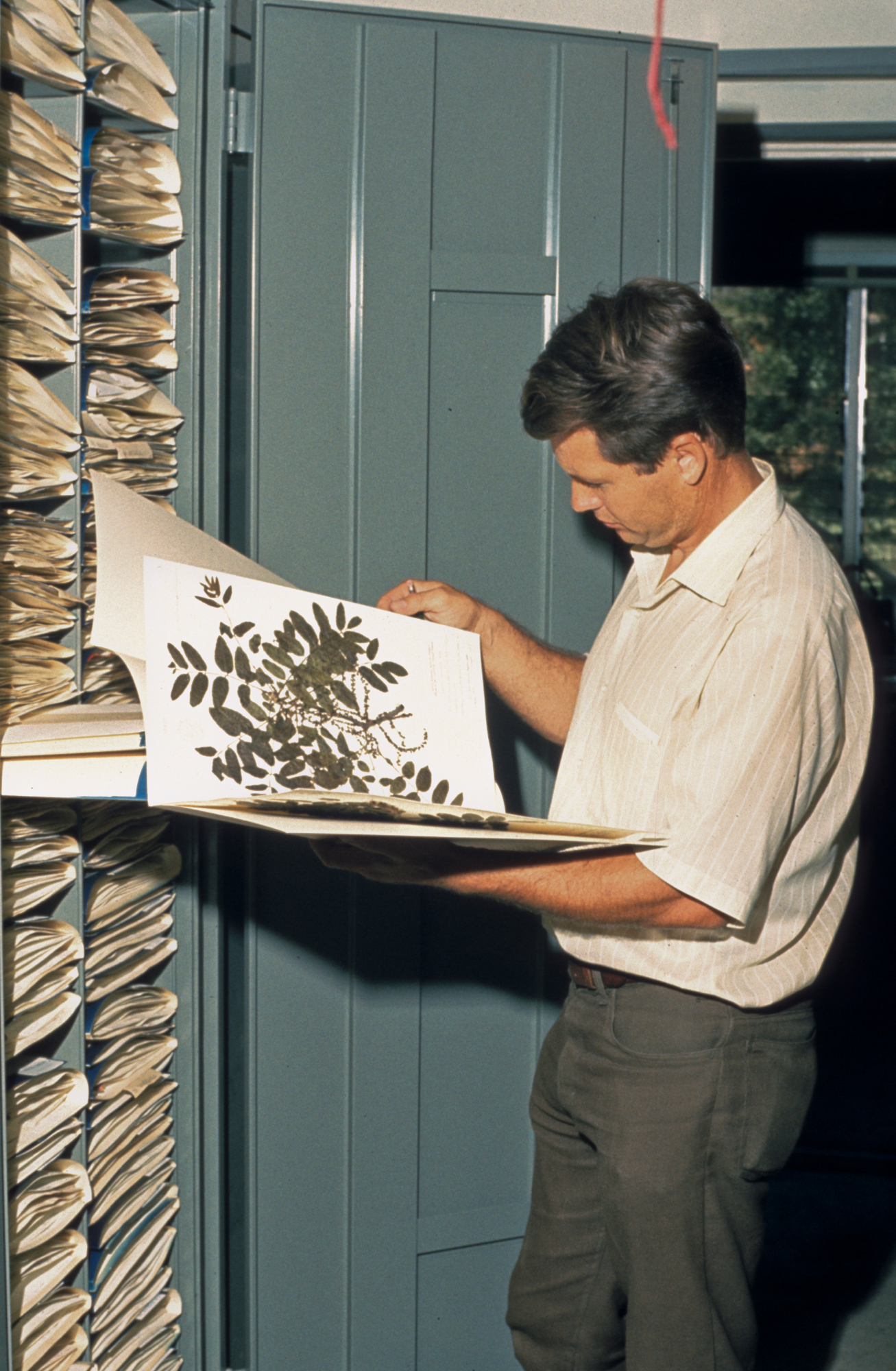 « back to search Ralph Philbrick with pressed plant specimen, Herbarium Media FormatSlide PhotographerM.S. Muckley Location Information Place Name Santa Barbara Botanic Garden Country: United States State: California County: Santa Barbara Santa Barbara Botanic Garden Garden Building Depicted Herbarium General Subject SB Botanic Garden Department Research People People Depicted Ralph N. Philbrick Image & Format Details Photo OrientationPortrait Collection SBBG Library Archives Index NumberSL_12455