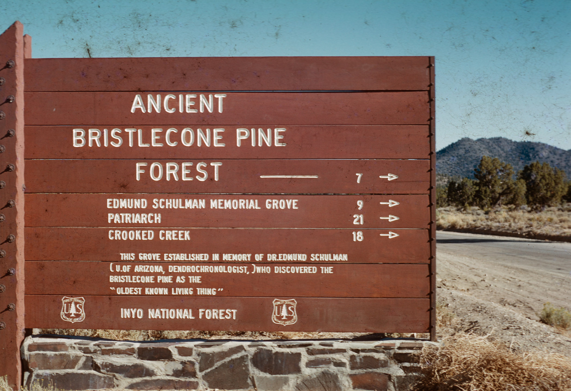 Road sign, Trip to Ancient Bristlecone Forest, Inyo National Forest w/Neil Muller, 1960-68