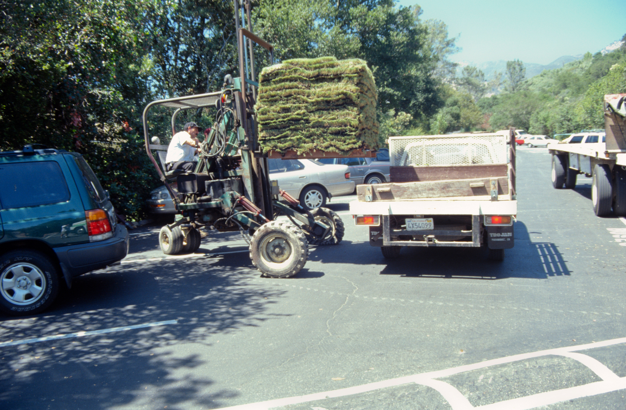 tractor unloading sod for the new Meadow lawn Installation