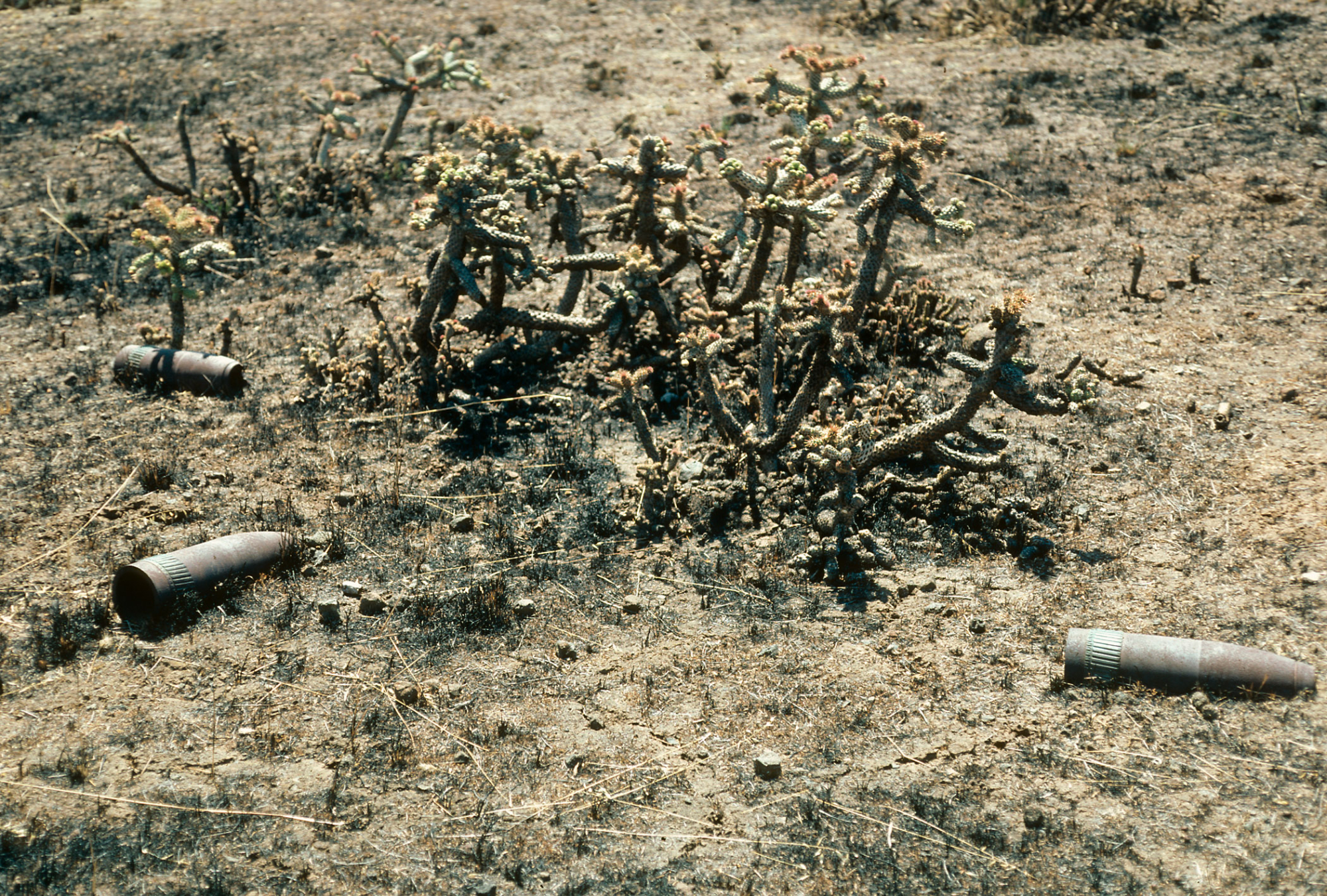 Unexploded shells, burned Opuntia prolifera, San Clemente Island